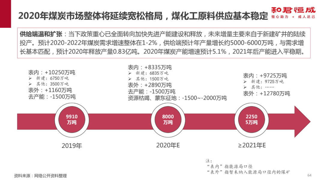 2020年市场整体将延续宽松格局,煤化工原料供应基本稳定;宏观调控下煤炭价格波动不大,煤化工主要原料价格呈稳定趋势;进口煤炭占总量的比例或将减小,煤化工进口原料比例也将缩小;